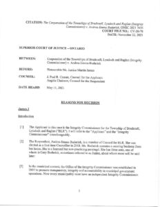 Decision Justice James ONSC 2021 7635_web Previous PostCourt orders BLR Council seat be declared vacant; Budarick to appeal Next Post Leave a Reply Cancel replyYour email address will not be published. Required fields are marked *CommentName* Email* Website Save my name, email, and site URL in my browser for next time I post a comment. Δ