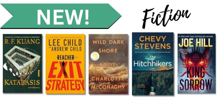 New Fiction titles: Katabasis by R.F. Kuang Exit Strategy by Lee Child and Andrew Child, Wild Dark Shore by Charlotte McConaghy, The Hitchhikeers by Chevy Stevens, King Sorrow by Joe Hill. (Above)