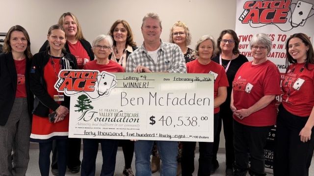 Catch the Ace is a progressive raffle lottery featuring multiple weekly draws. 20 percent of weekly ticket sales are awarded as the weekly prize, 30 percent are added to the progressive jackpot and 50 percent support the St. Francis Valley Healthcare Foundation, funding local healthcare needs.
