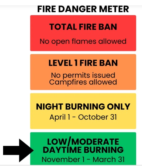 PLEASE NOTE: campfires are not permitted within the Village of Barry’s Bay or Hamlets of Combermere and Wilno. Propane fire pits are acceptable. A Total Fire Ban includes fireworks.