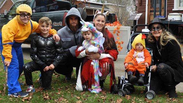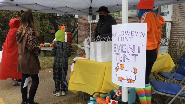 The mild but damp weather on Saturday, Oct.30 provided a comfortable environment for family members of all ages to participate in the Madawaska Valley Public Library’s Hallowe’en Hunt. Twenty-six merchant members of the Barry’s Bay Business Improvement Area (BIA) displayed Hallowe’en Hunt icons in their shop fronts, and many also joined in the fun with scary decorations and treats for the children, while Madawaska Valley Township provided a free hot dog lunch at the Railway Station. The Current followed some earlybird Hunters from Northern Credit Union down Opeongo Line and when we checked in at the Library after just one hour there had already been a steady stream of Hallowe’en Hunters picking up Treasure Maps and handing in completed answer sheets to collect their Treat Bags. Library CEO Karen Filipkowski told The Current that participation had increased substantially since last year, with more than 120 treat bags handed out. Enjoy these images from the fun.